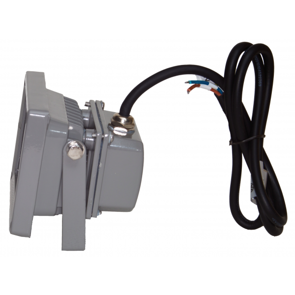 Eclairez votre terrasse, vos massifs, le hall d'entrée, l'accès de votre garage grâce à ce petit projecteur LED rectangulaire pour l'extérieur, 10W 230V, 900 Lumens, blanc froid, angle 120°, boitier aluminium gris.